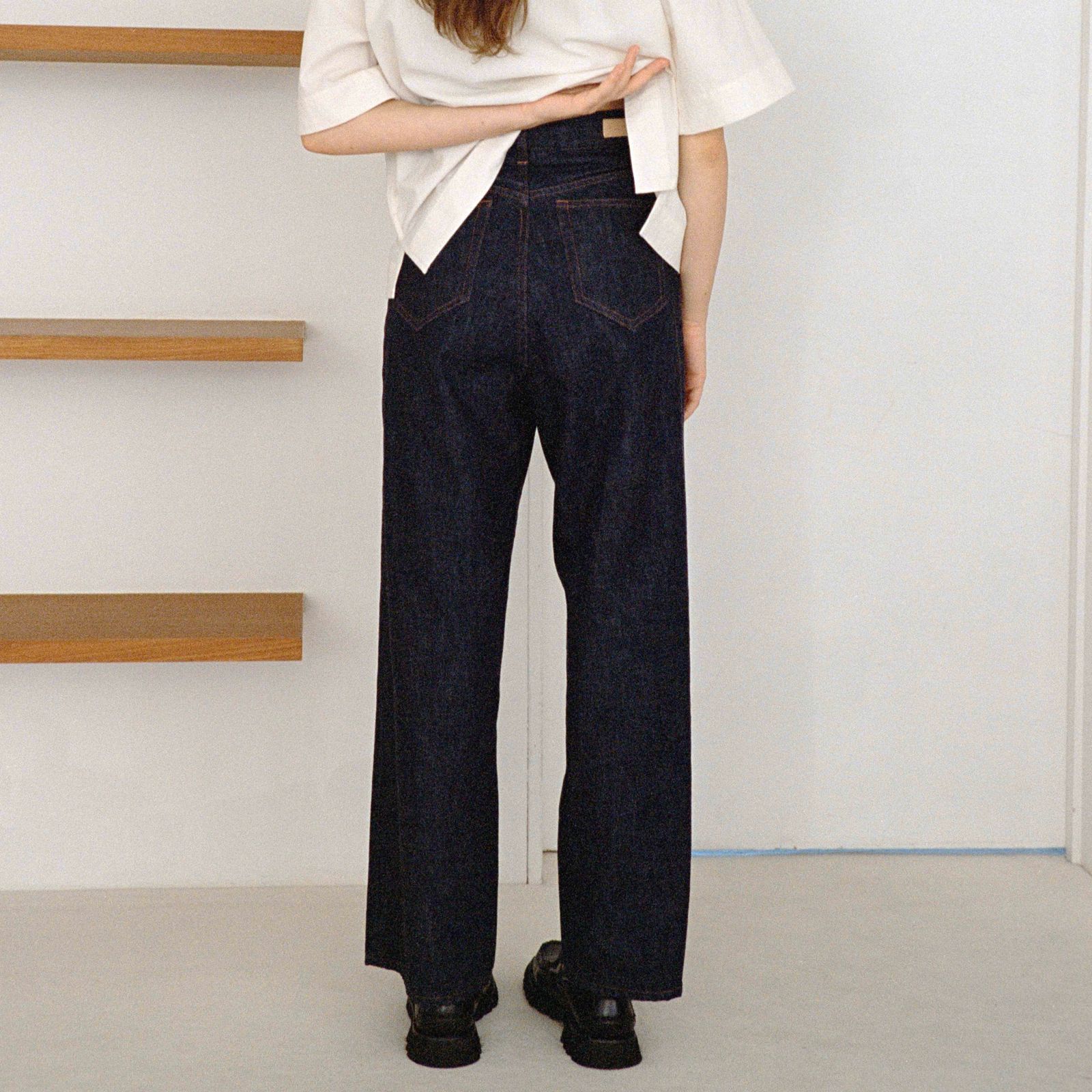 美しいシルエットを創り出すためにかける時間、モダンなデザインと職人技を組み合わせて製作された本作。4ポケットのミニマルなデザインのハイウエストのワイドシルエットデニムです。