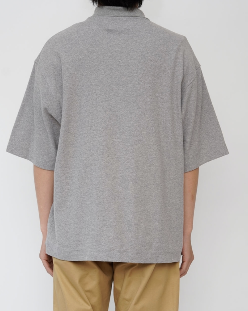 軽めなサマーニットポロ。微表面変化のある組織で編み上げ、さりげないMIX感が感じられる一着です。内側はさらっとしているので、肌あたりの良い着心地です。