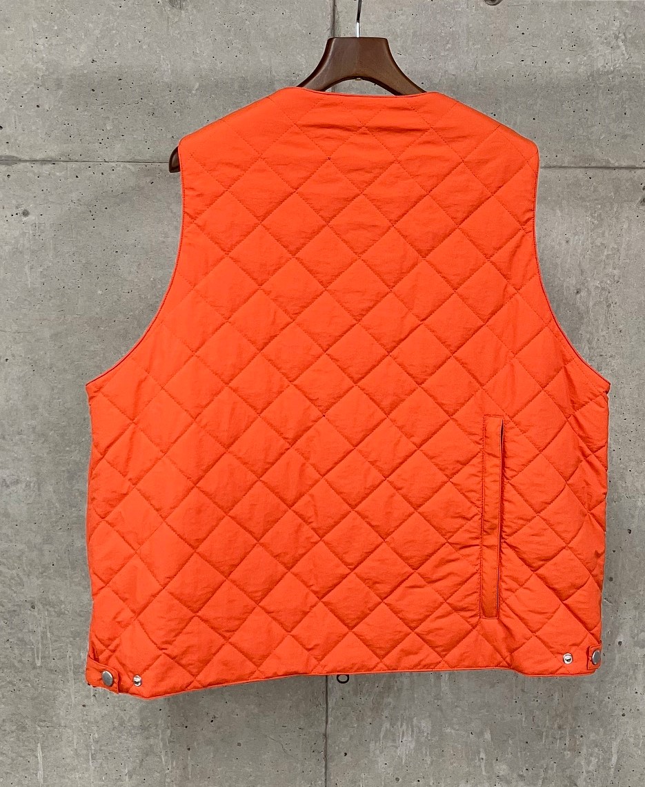 撥水性のあるタフタ素材を使用したオーバーサイズの中綿ベストです。