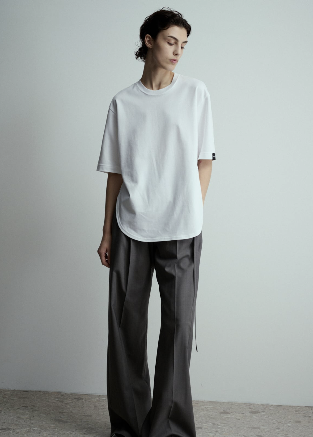 ストレスフリーなゆったりとしたシルエットです。ラウンドにカッティングされた裾や前後差をつけた着丈もポイントです。シンプルなデザインで合わせるものを選ばず、デイリーユースに活躍してくれます。