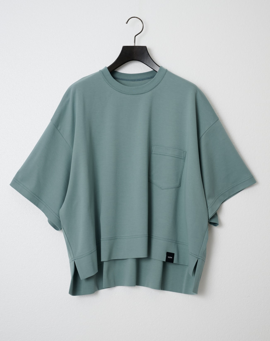 スーピマコットンの細番手糸を使用したハイゲージのモクロディ素材です。密度によるハリ感、細かい微起毛、特殊柔軟仕上げによる柔らかな手触りが特徴の生地です。