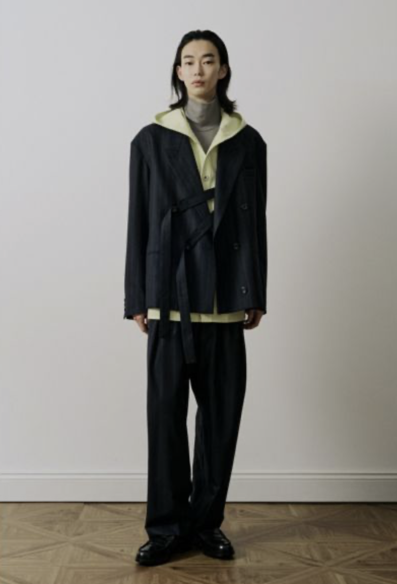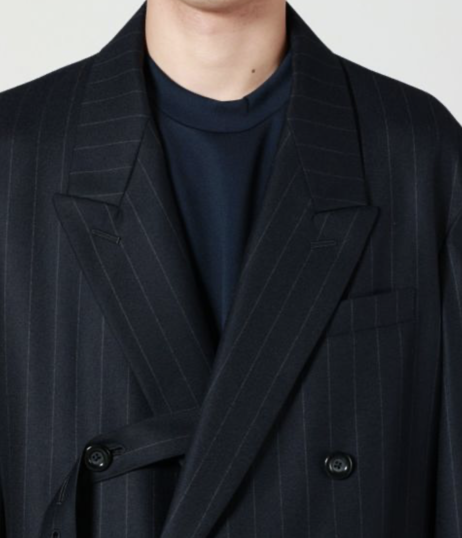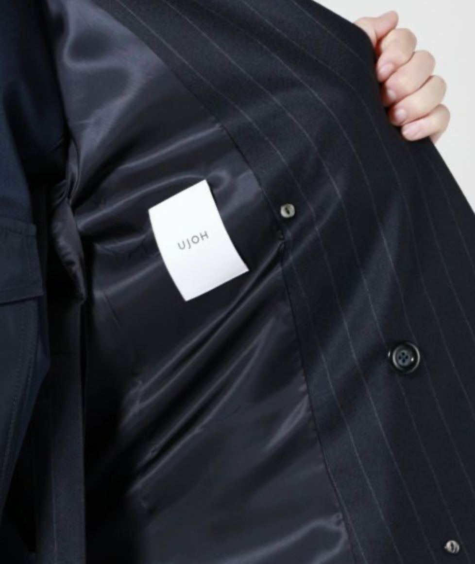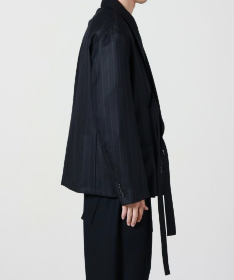 UJOH(ウジョー)のスペンサージャケット。ドロップショルダーで抜け感漂うボクシーなシルエットを採用し、オーセンティックなダブルジャケットをラフな印象に仕立てました。内側に付いたベルトでお好みの位置に留められるデザイン性の高さも魅力です。