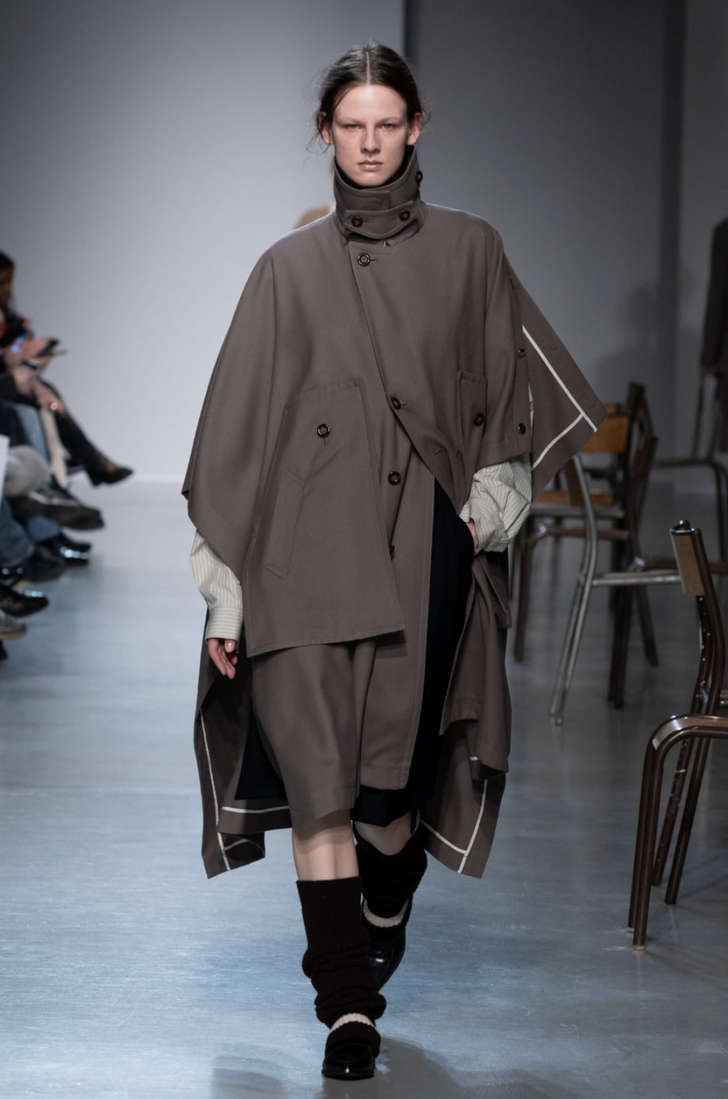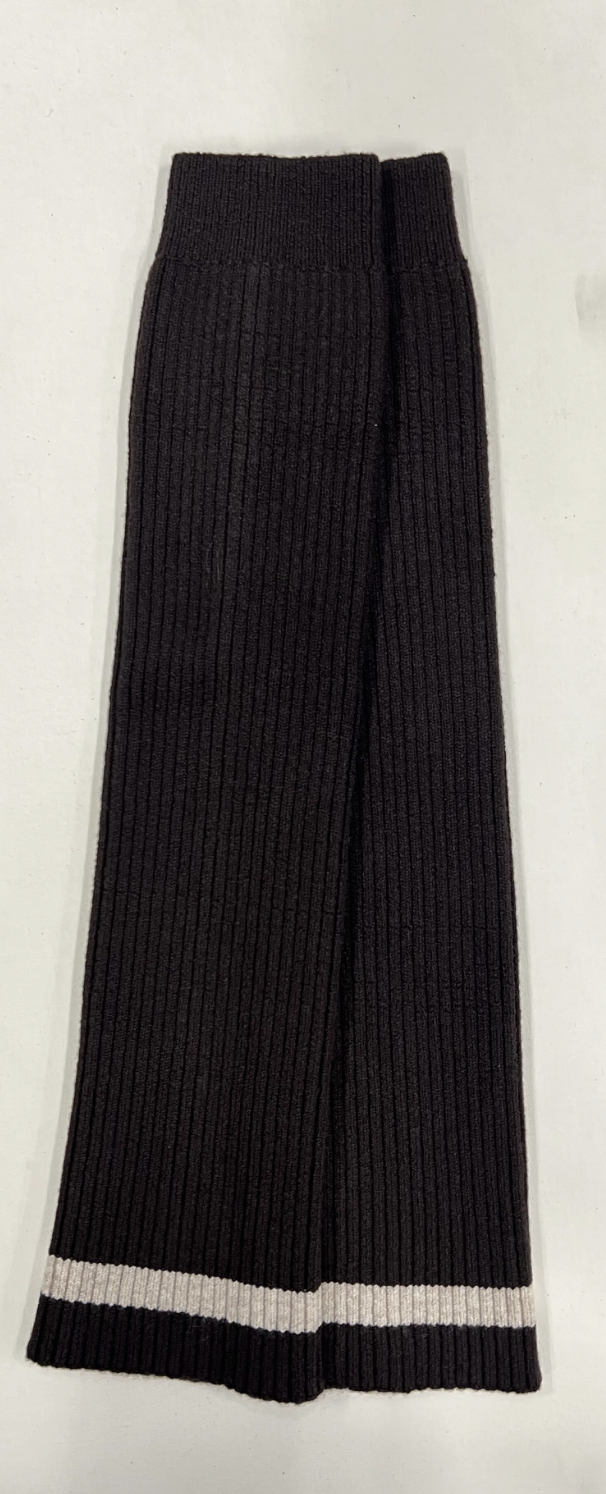 程よい厚みがあり、たるませて履けるルーズ感がポイントのレッグウォーマーです。後ろにスリットがあり靴にかぶせて着用します。裾に入れたラインがアクセントになっています。