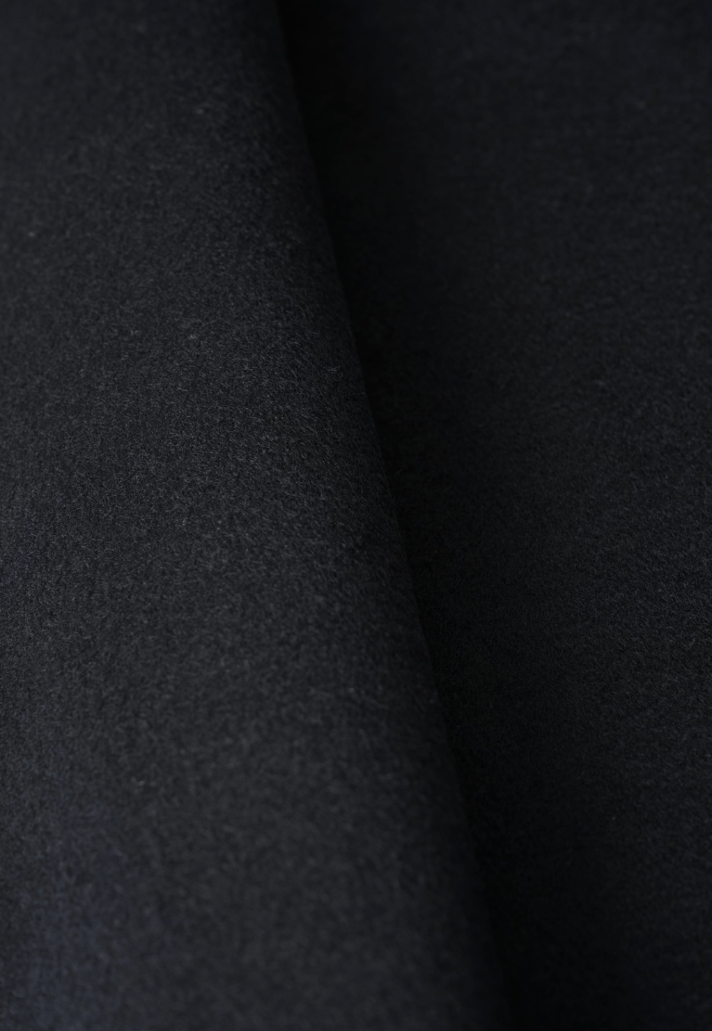 二重で織り上げた、両面ビーバー仕上げの素材です。光沢があり、しなやかで高級感のある表情です。保温性にも優れ、ふんわりとしたやわらかさが特徴です。