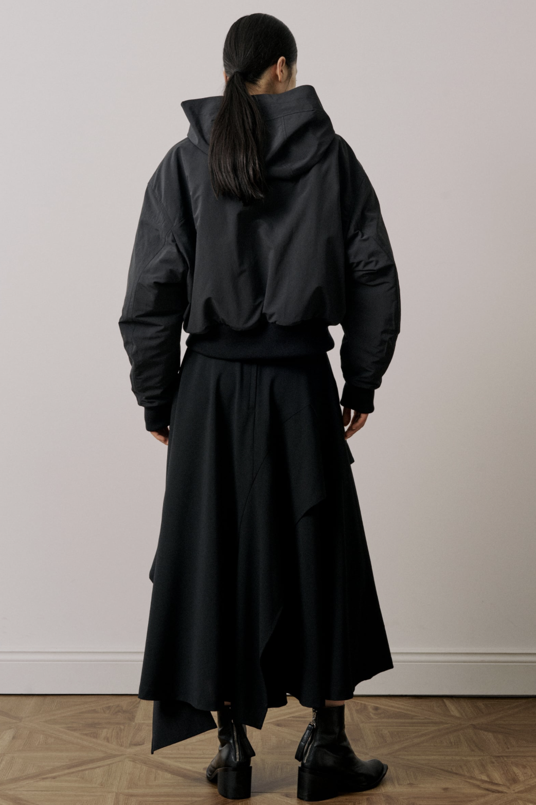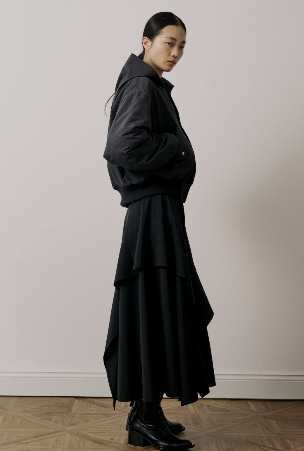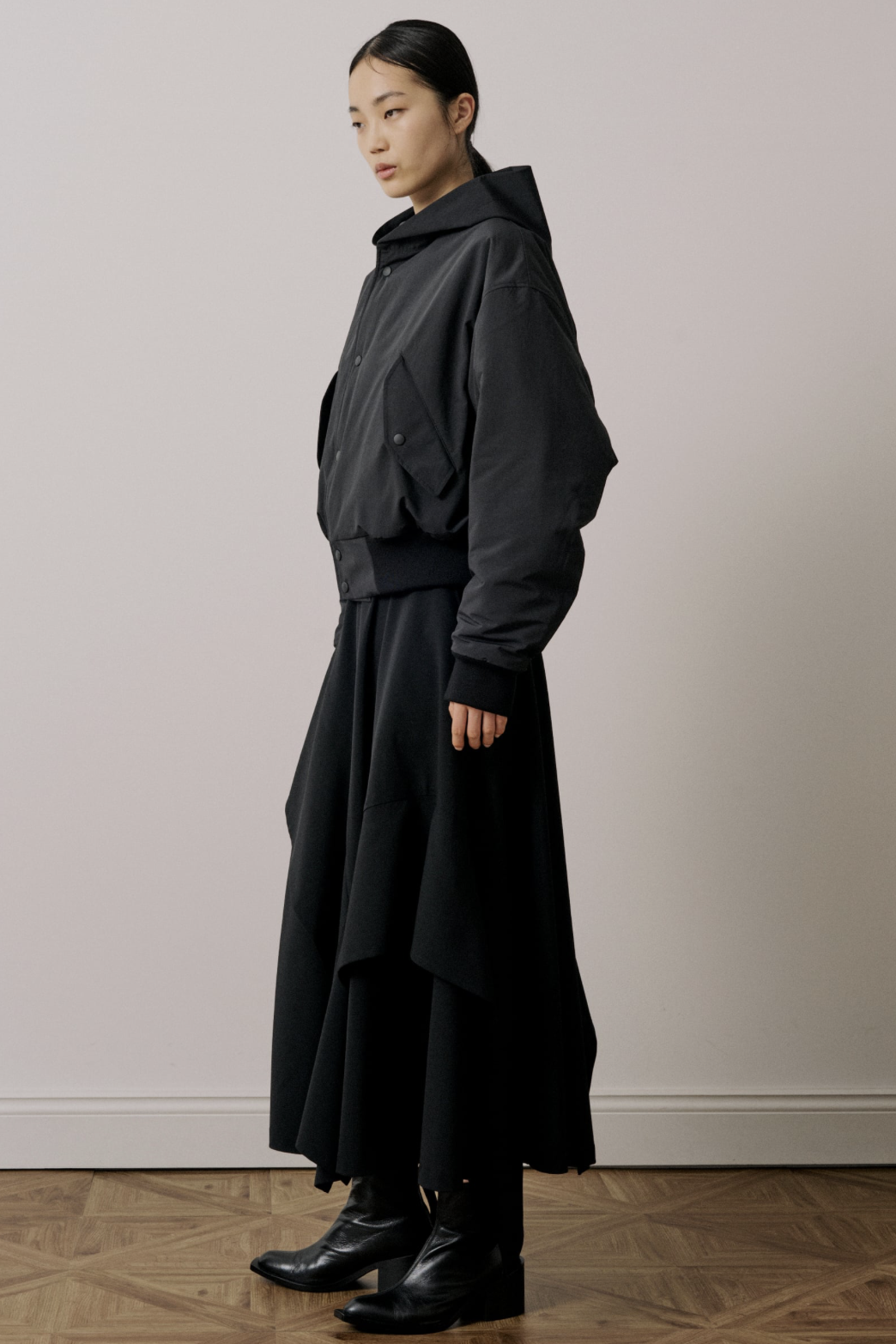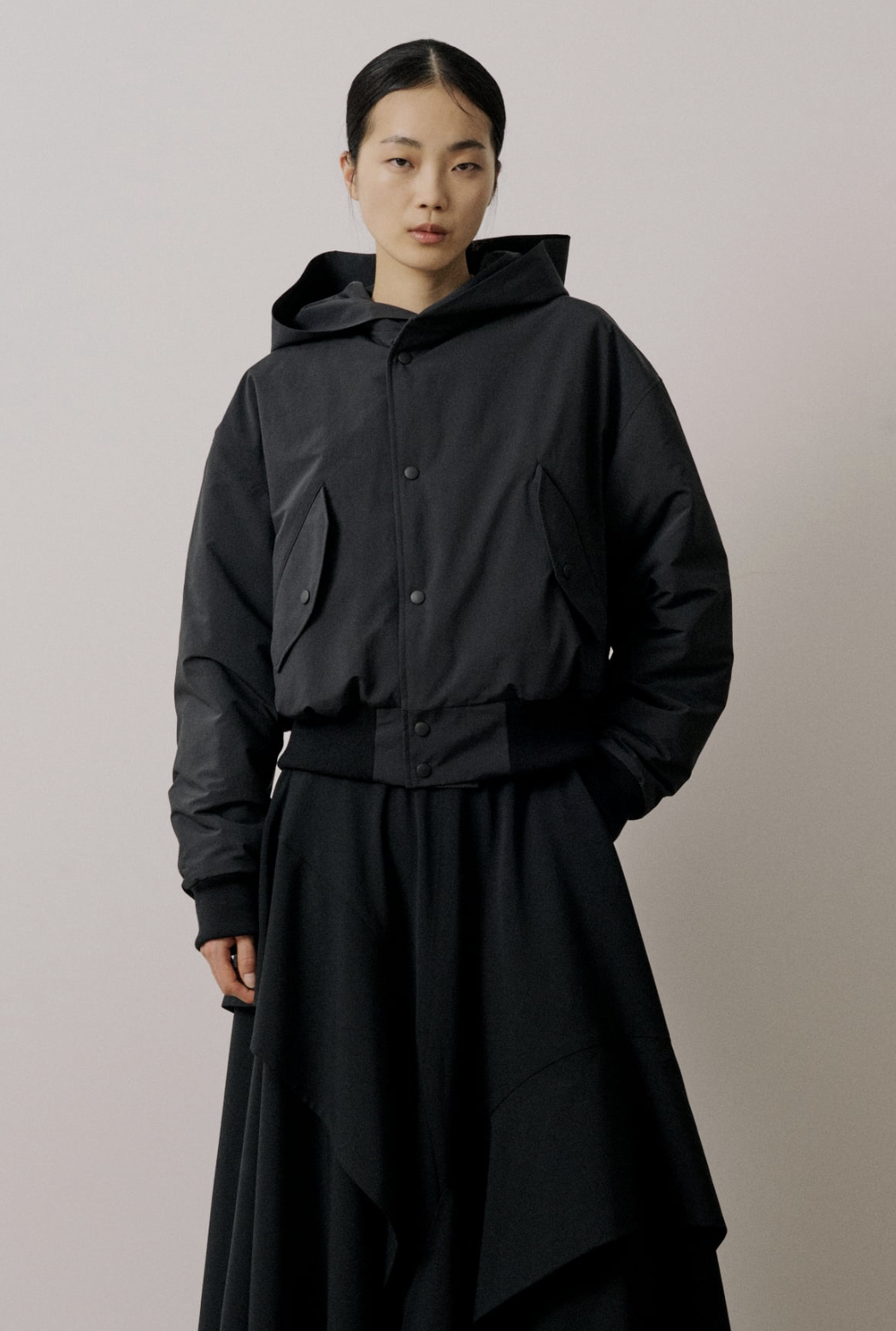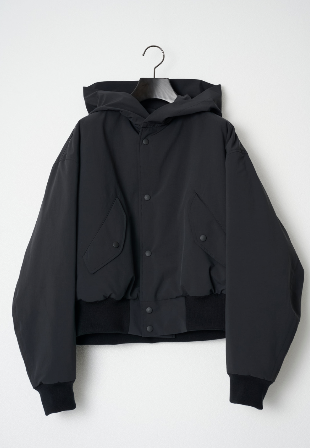ボリューム感とショート丈のバランスにこだわったブルゾンです。裏地にキルティングを使用し立体感のあるシルエットとボリュームのある袖が特徴です。キルティングの綿は光電子の綿を使用し、軽さと高い保温性を両立しています。