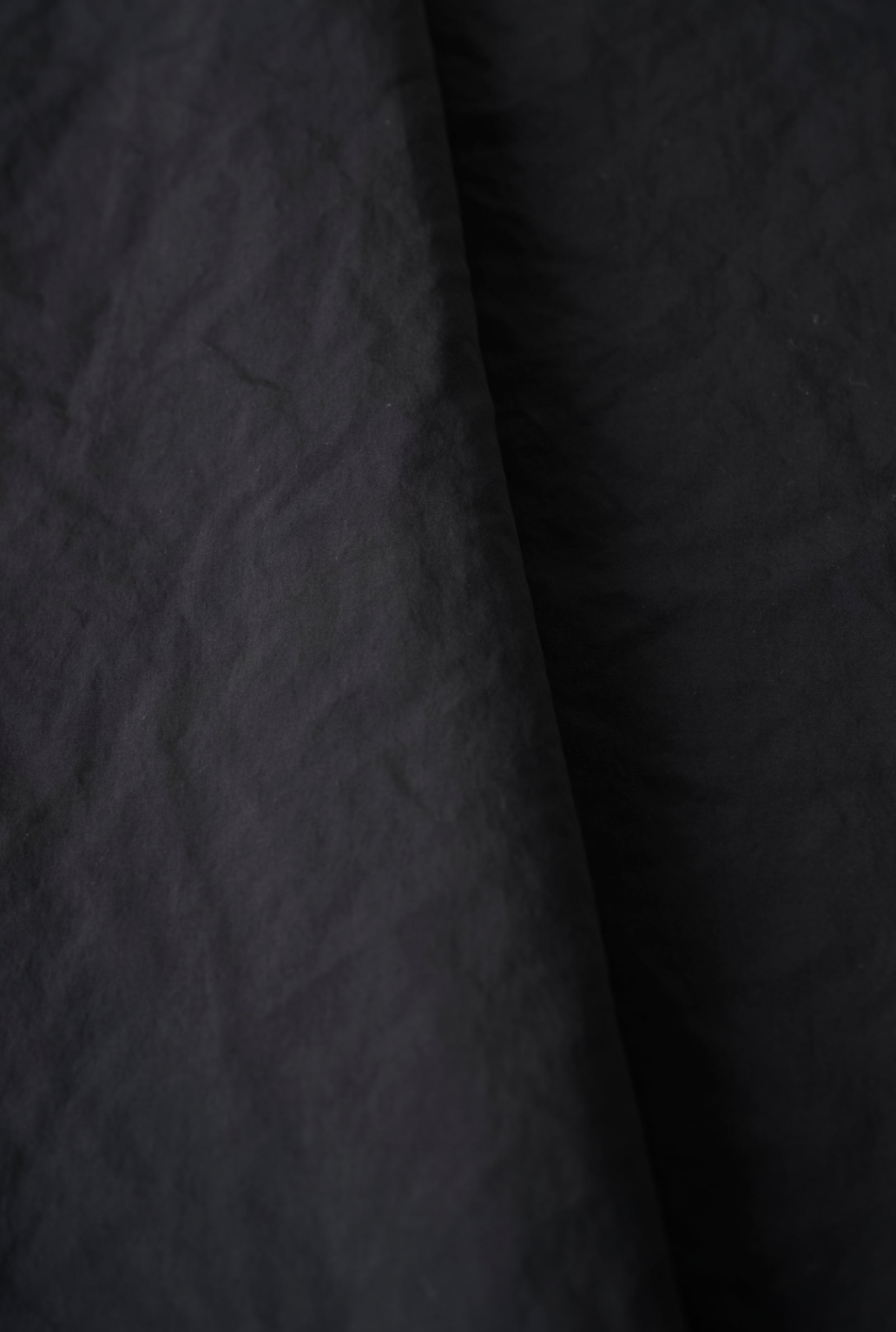 軽量で耐久性のある、撥水機能付きポリエステルタフタです。タフタ特有のなめらかな表面感としなやかな手触りを持ちながら、ナチュラルな表情も兼ね備えた素材です。