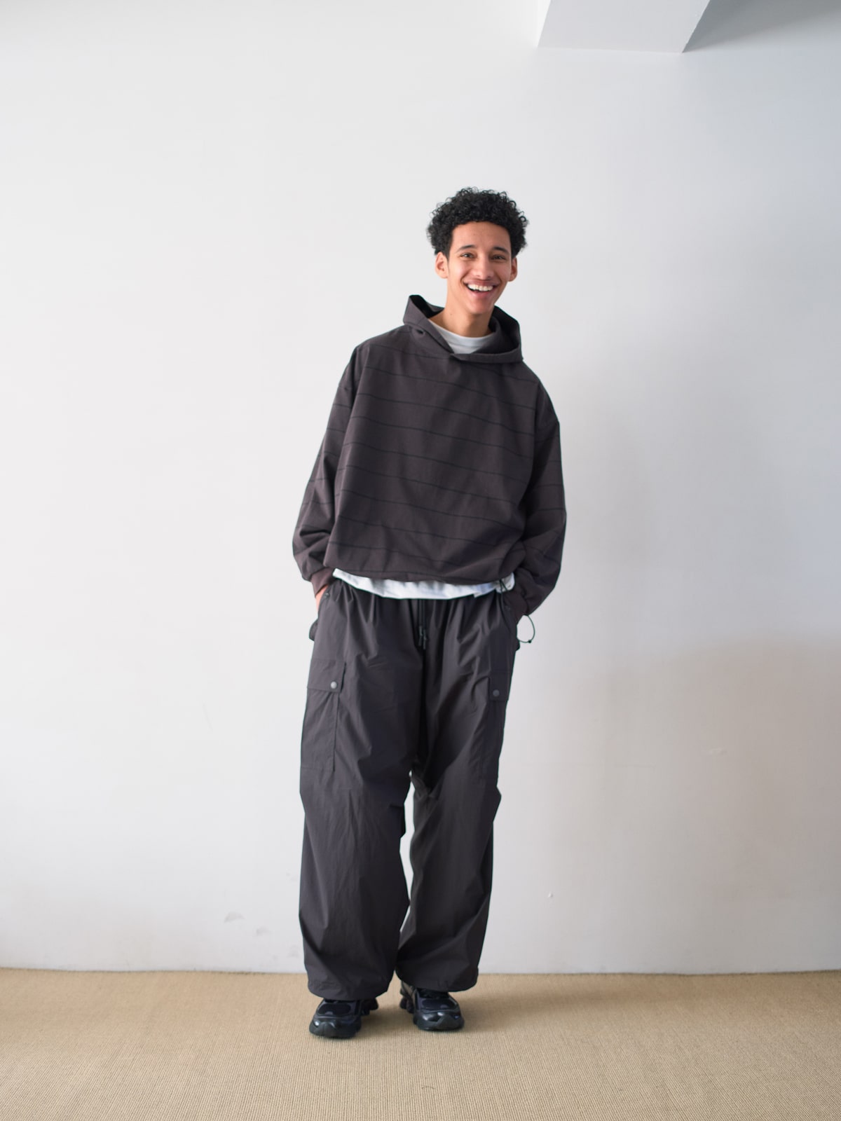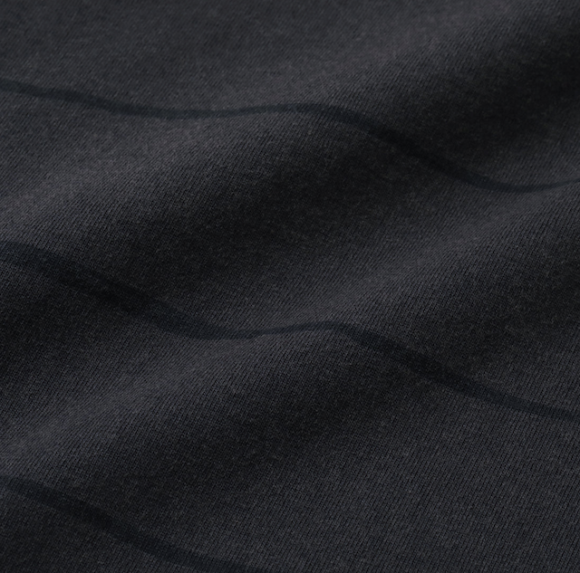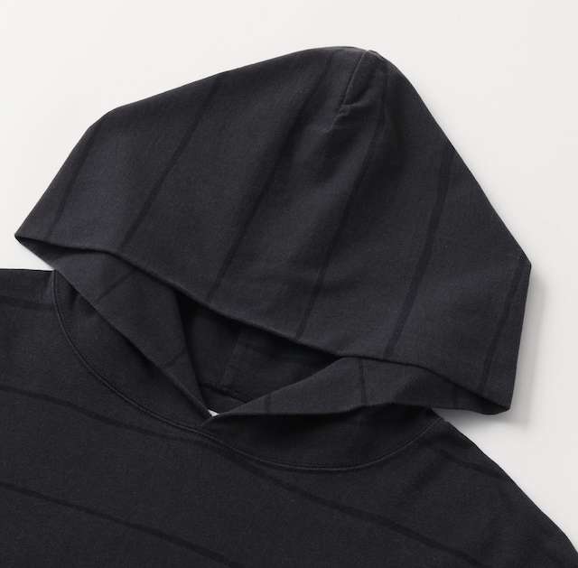 S.F.C (エスエフシー)のSIDE STRIPE SUPER BIG LS TEE (DISCHARGED) / NAVYになります。SFCオリジナルサイドストライプ柄だけを残して背景の色だけを落とした抜染加工を施したビッグシルエットのフード付きLS TEE。素材は30SのMVS(羽毛の少ない糸)を使用し引き揃えて編む事でハリ感を持たせた、しっかりとした厚手の天竺です。