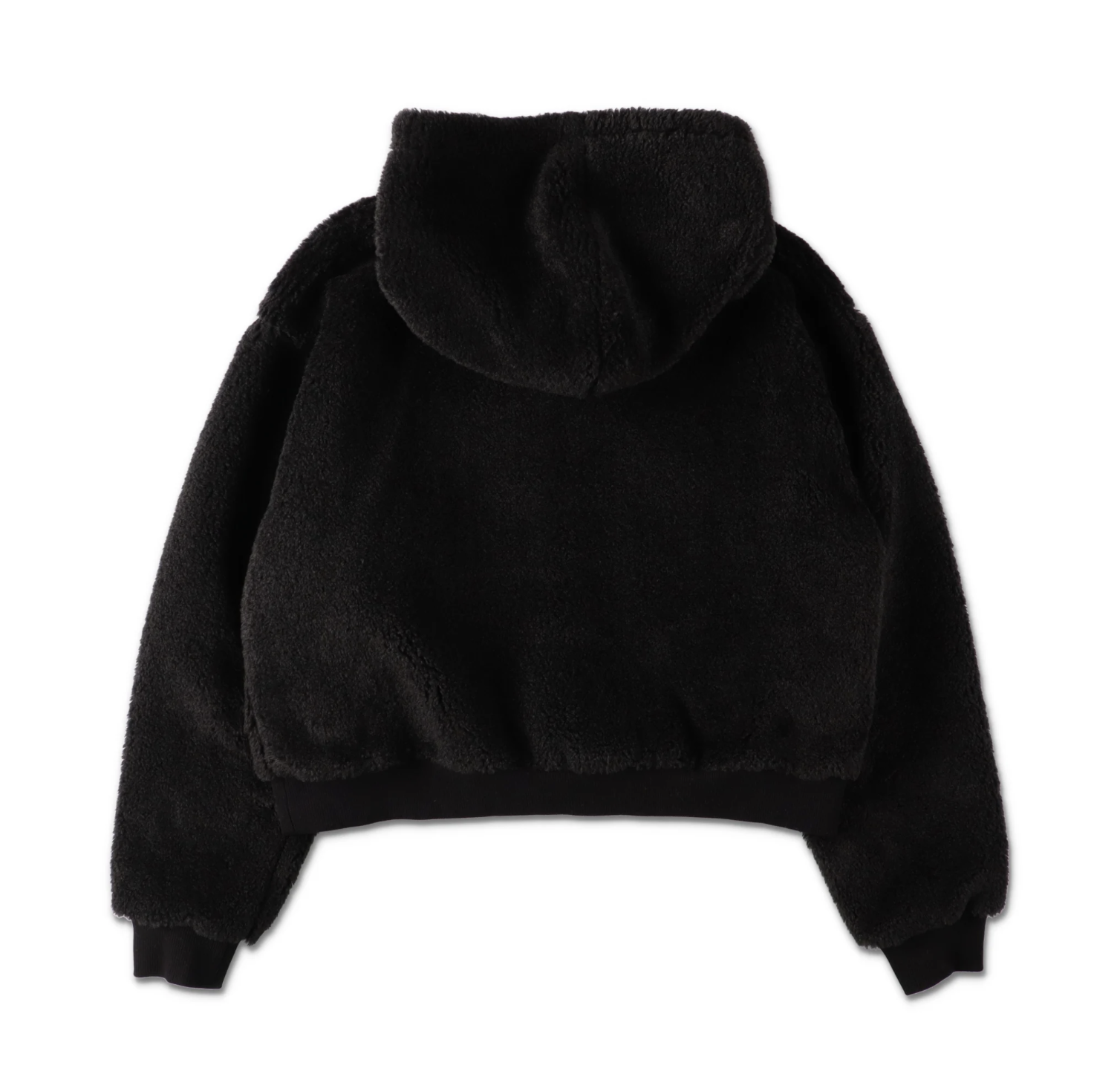 身にまとった時のふんわりとした軽さとテディーベアのようなキュートなルックスのシャギーフーディー。 ファー部分に150d中空糸を使用し、軽さと柔らかさとボリュームを兼ねそろえた素材です。 POLYESTER 100% COLOR : BLACK SIZE: (S)着丈約57cm 身幅約59cm 袖丈約59cm (M)着丈約59cm 身幅約61cm 袖丈約60cm ※手作業での計測となりますので多少の誤差はご了承下さい。