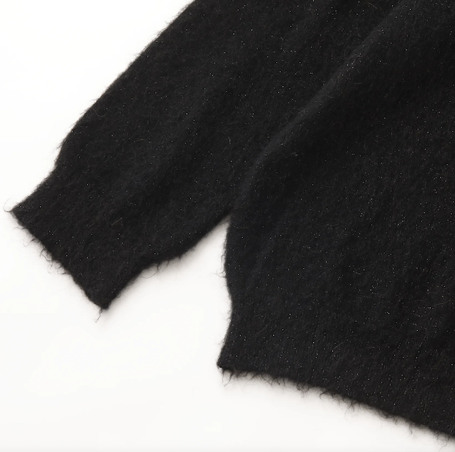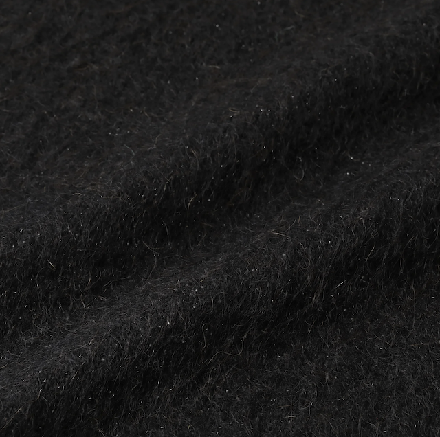 S.F.C (エスエフシー)のLAME MOHAIR CARDIGAN / BLACKになります。オーバーサイズのラメモヘアカーディガン。素材は毛足の長さに加え、適度な弾力性と光沢が特徴的なモヘア混糸に極細ラメフィルムが撚糸されたラメ糸を引き揃えた7G編みのニット。起毛の浮遊感にラメが見え隠れする他にはない編地に仕上げています。