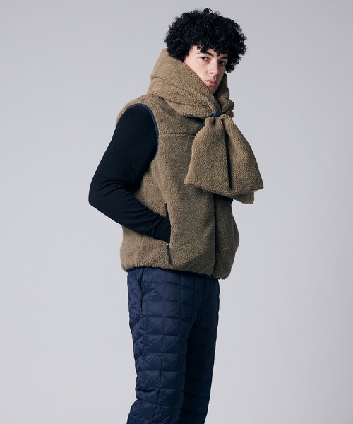 TAION R/S SOFT BOA+LIGHT DOWN HI NECK VEST(BLACK×BEIGE)