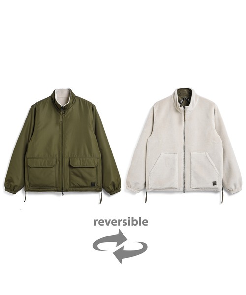 表側には、ダウンアイテムにも使われる軽量で高密度なミリタリーリップ生地を採用、 裏側はマイクロボア素材で仕立てており、スタイルに合わせて使い分けられるリバーシブル仕様です。
