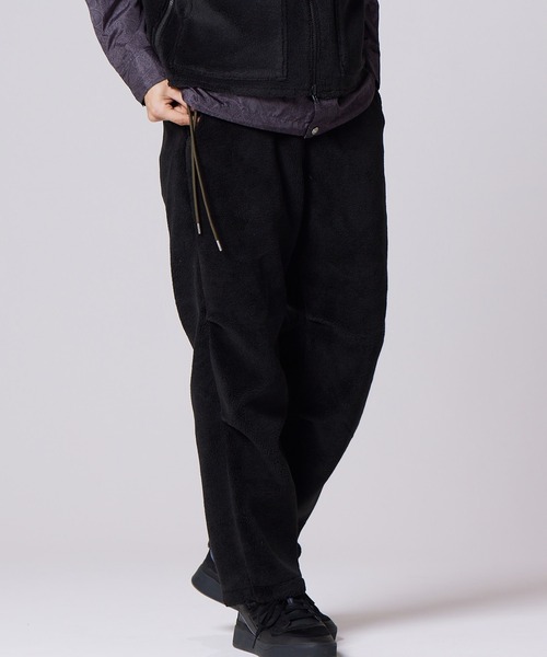 ボリューム感のあるワイドシルエット、ウエストはゴム+ドローコード仕様なので、リラックス感のある履き心地。