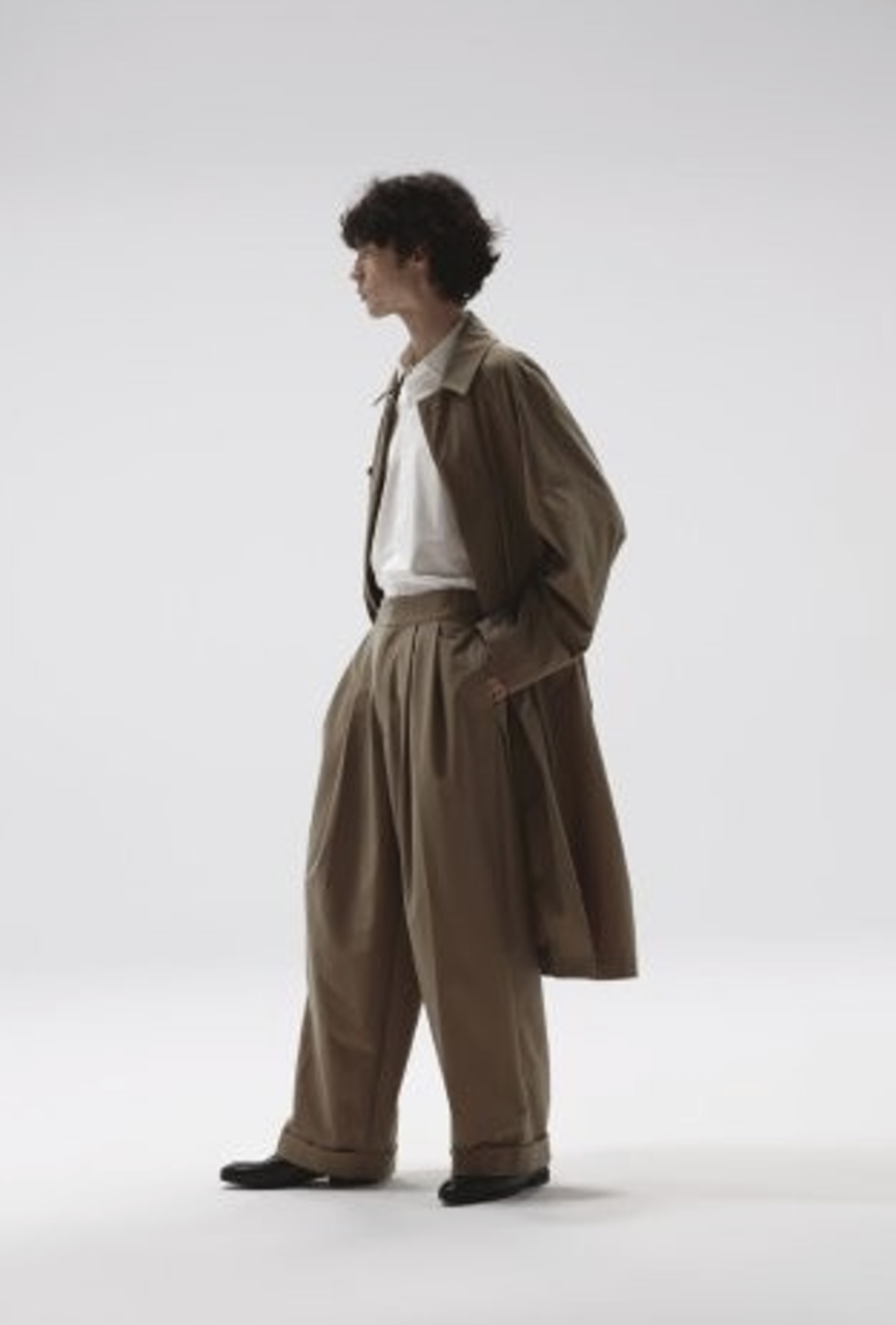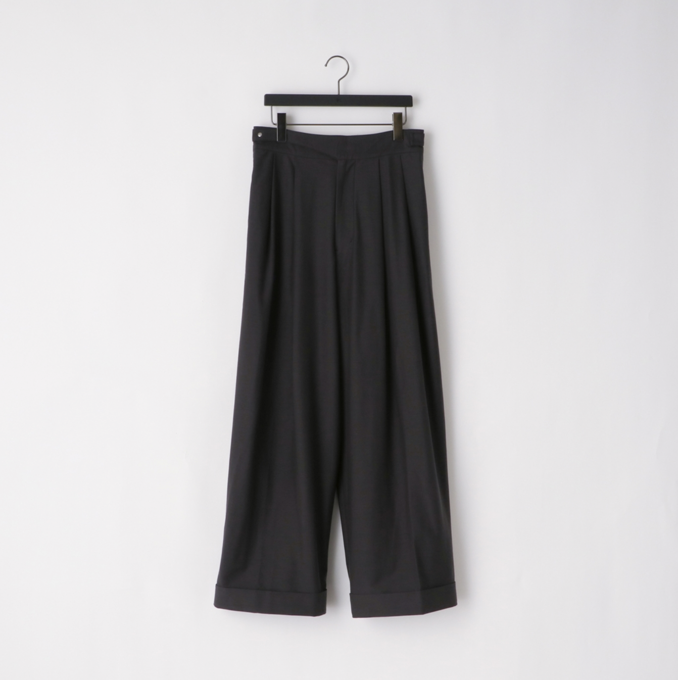 裾もダブル仕上げでワイドシルエットが素材の落ち感をより演出しております。