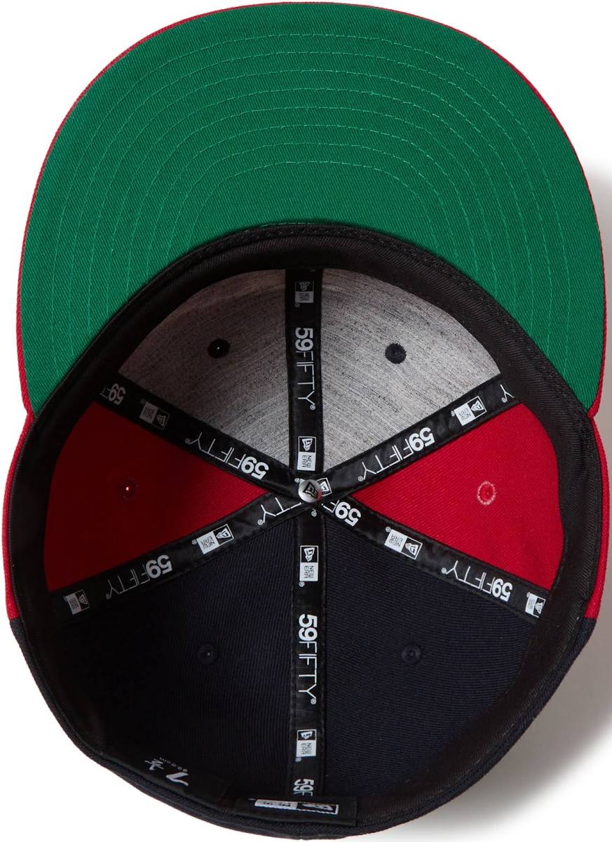 シルエットはフロントパネル内側の芯を取り除いたソフトバックラム仕様の59FIFTY。柔らかい被り心地です。サイズ調整のない仕様で、約1cm刻みのサイズ展開。頭の小さい方から大きな方まで、ジャストサイズで被ることができます。また、アジャスターがないので、リアのシルエットが美しく、頭の形が綺麗に見えます。
