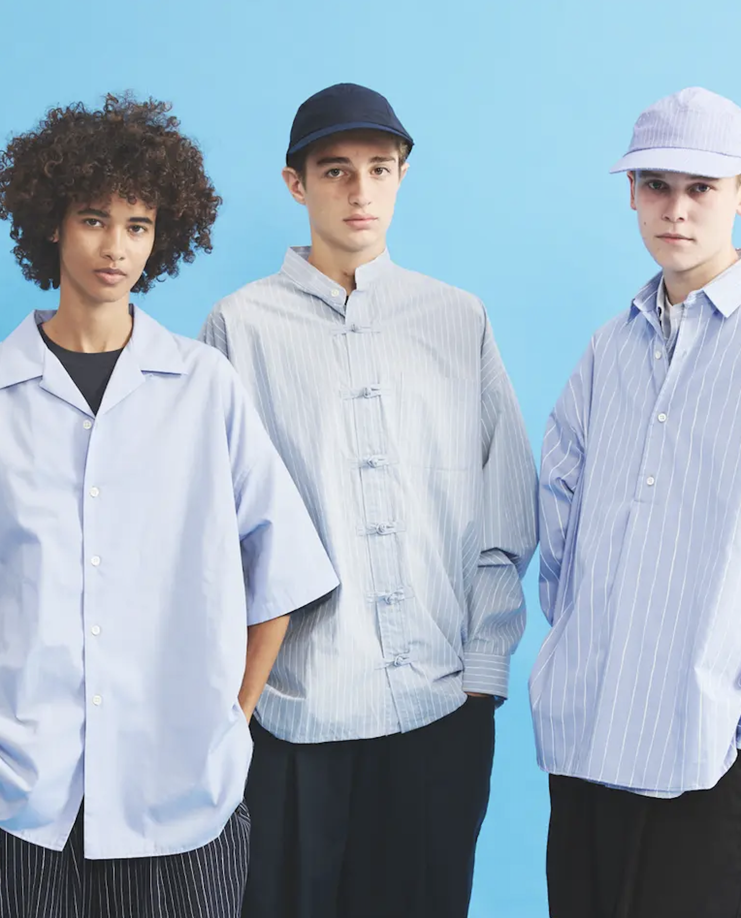 S.F.C Stripes For Creative S.F.C COTTON STRIPE KUNG FU SHIRT Sax
