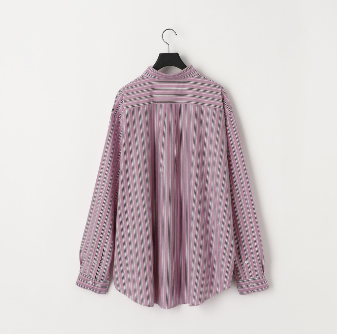 “atmosphere” 空気を纏うという名前の通り、 ゆったりとしたシルエット、素材の落ち感がわかりやすい定番シルエットのシャツです。46Gという、スーパーハイゲージで、タイプライターという織物の高密度平織組織を実現。 ストレッチ性が高く一度着ると止められない着心地、そして、着用時のしわなどの形態変化も少なく、イージーケア性も高い。 ハリ感、光沢感、イージーケアを持ち併せた我々にしかできないニュースタンダードシャツ地。