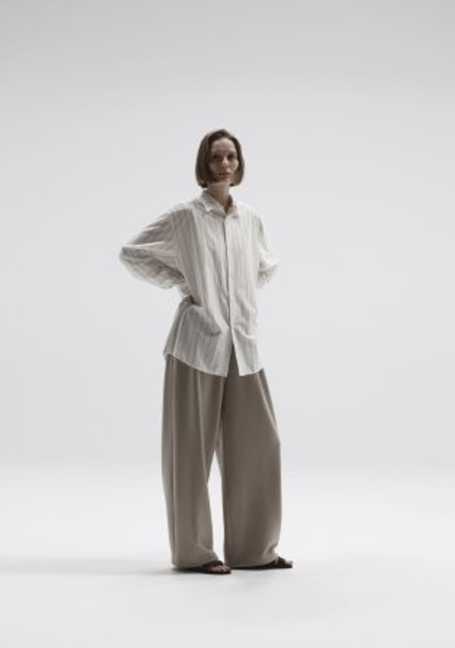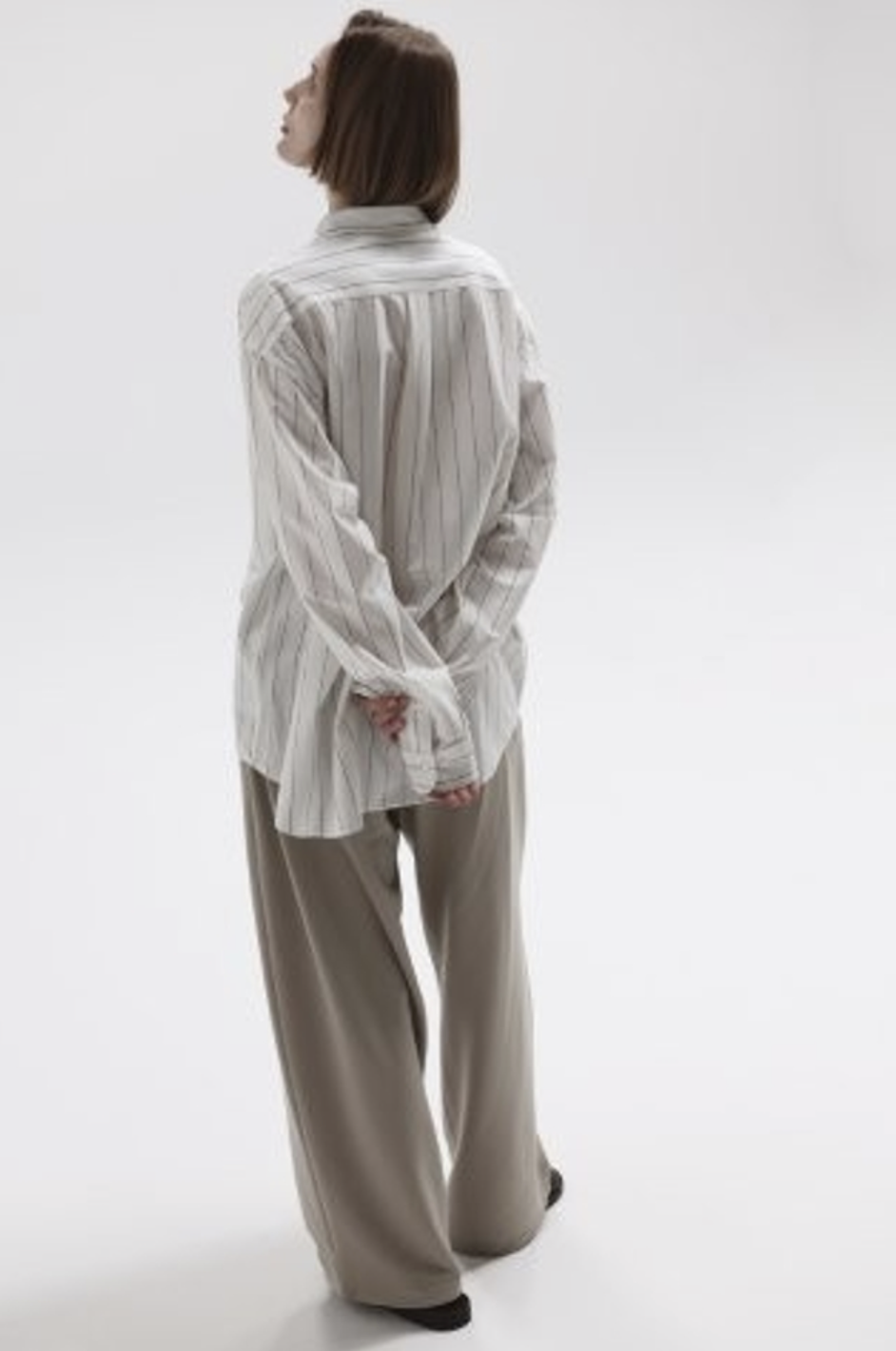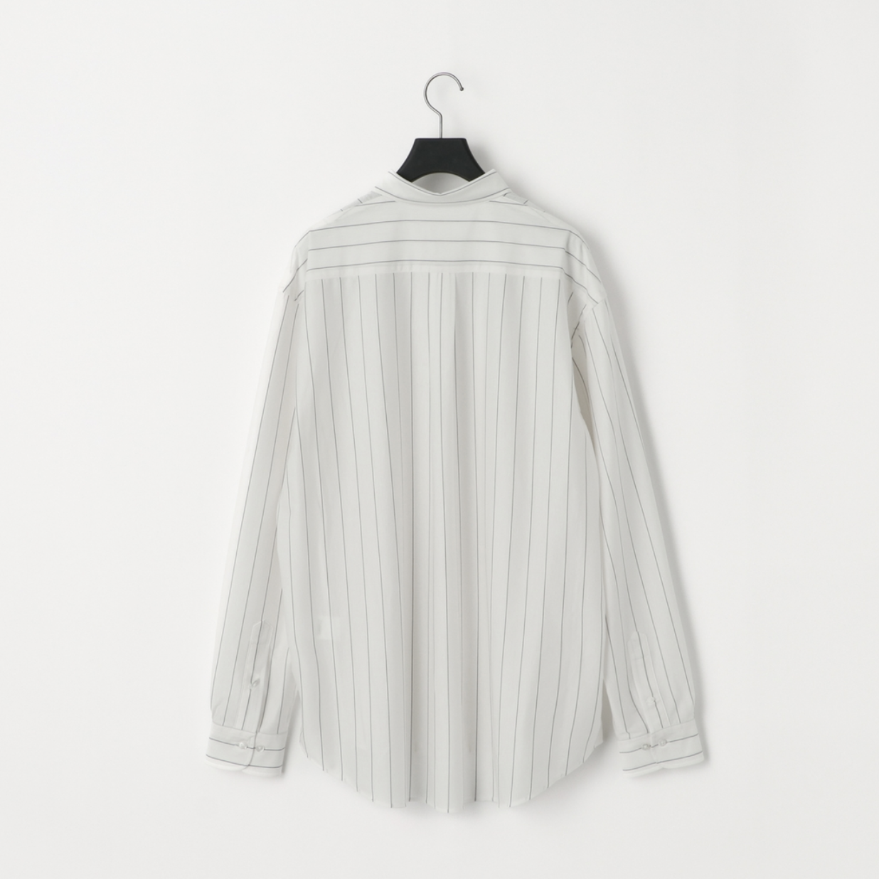 “atmosphere” 空気を纏うという名前の通り、 ゆったりとしたシルエット、素材の落ち感がわかりやすい定番シルエットのシャツです。46Gという、スーパーハイゲージで、タイプライターという織物の高密度平織組織を実現。 ストレッチ性が高く一度着ると止められない着心地、そして、着用時のしわなどの形態変化も少なく、イージーケア性も高い。 ハリ感、光沢感、イージーケアを持ち併せた我々にしかできないニュースタンダードシャツ地。
